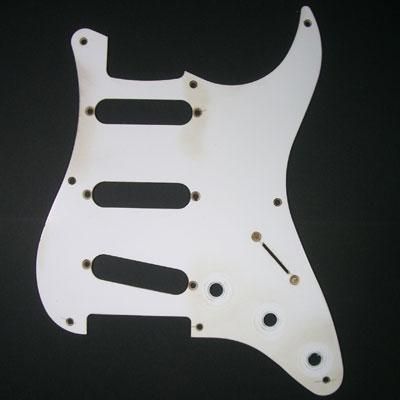 1.6mm厚の白1プライが基本です。 現行のFender USAがテンプレートですが、Fender Japanにもほぼ適合します。ネジ2種付属。