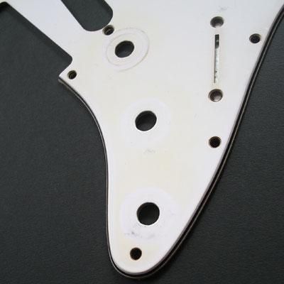 1968-69年に見られる、白4プライ、白パールバックを基本としています。 現行のFender USAがテンプレートですが、Fender Japanにもほぼ適合します。ネジ2種付属。